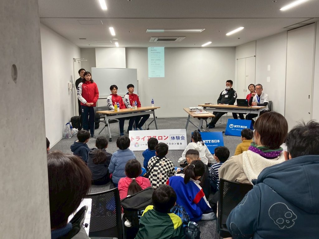 「体験会」では、未就学児から中学1年生まで、計22名の子どもたちが参加し、泳力や年齢に応じたスイム練習が実施され、基礎から丁寧な指導を受けることで、参加者一人ひとりが安心して取り組むことができました。また、強風で小雪が舞い寒さの中ではありましたが、屋外においてバイクおよびランの練習も行い、最後に、少人数でショートラン・バイク・ランのデュアスロン形式でミニレースを行いました。